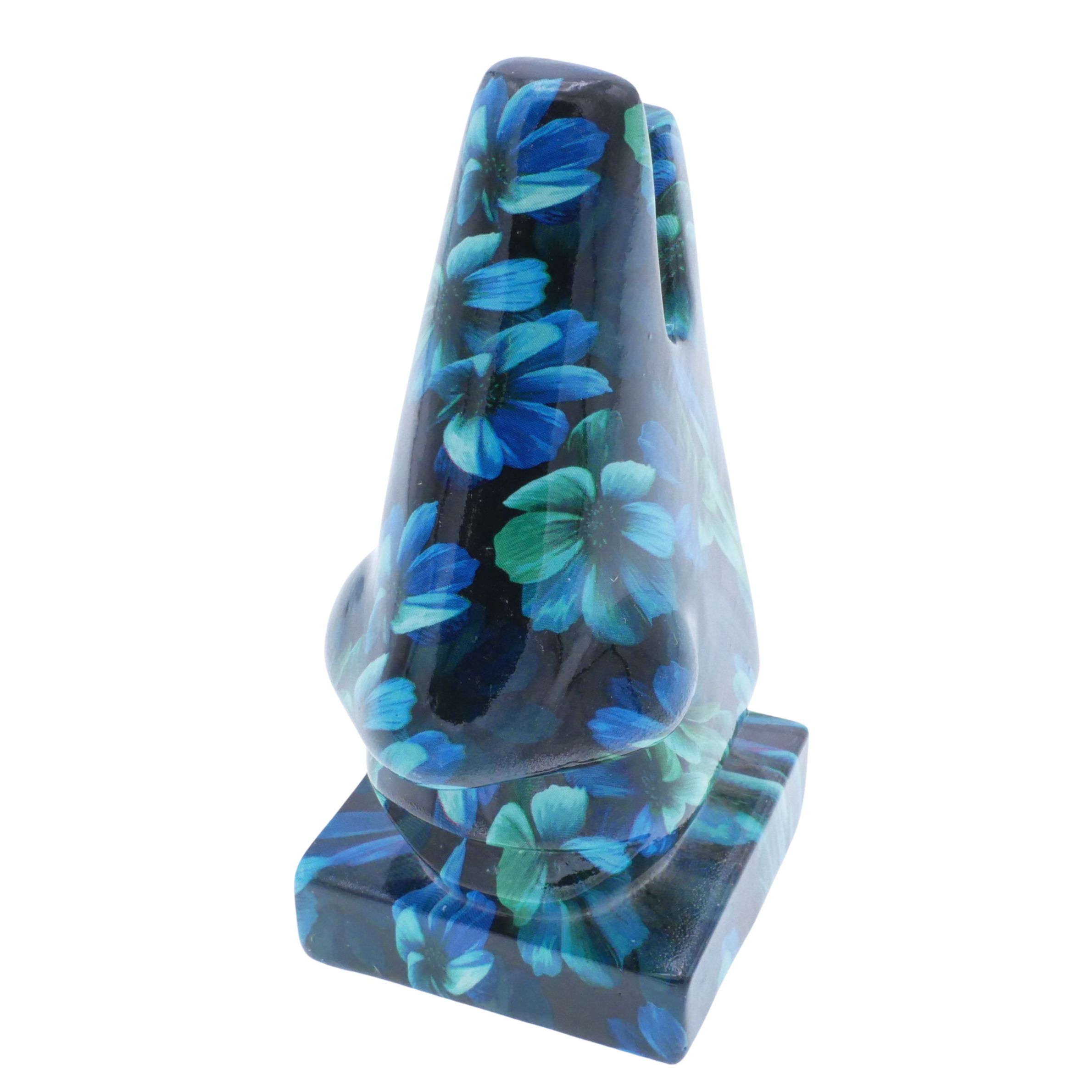 The holder is shaped like a nose and decorated with flower motifs.